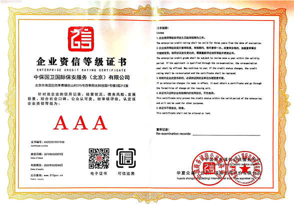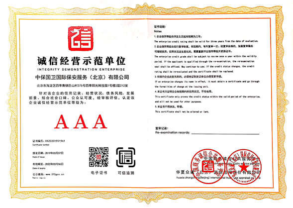 中保國衛(wèi)國際保安服務(wù)(北京)有限公司,屬中保國衛(wèi)集團旗下子公司。能全方位的為大型客戶提供優(yōu)質(zhì)的安保、押運服務(wù),是集人防和技防于一體的新型正規(guī)化綜合安保押運服務(wù)企業(yè),提供人防、物防、技防、聯(lián)網(wǎng)報*、非武裝押運等安防相關(guān)的一站式服務(wù)。
